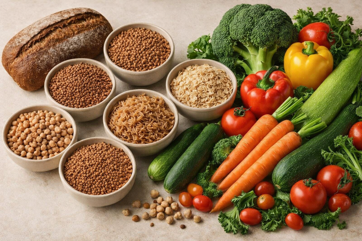Чем больше цельных продуктов (овощи, бобовые, цельные злаки), тем лучше.